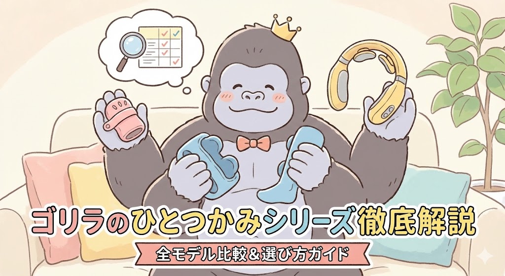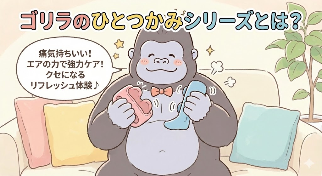 「ゴリラのひとつかみシリーズ」は、そのユニークなネーミングと“ゴリラ級のパワー”でSNSでも話題のマッサージ器シリーズです。 この章では、シリーズの基本的な特徴、開発したドウシシャの背景、そして爆発的ヒットの理由について解説していきます。