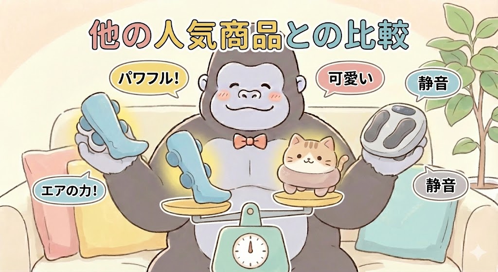 「ゴリラのひとつかみ」が気になっているけれど、他社のマッサージ器と何が違うのかも気になる…。 そんな方のために、ここでは同ジャンルの類似商品と比較しながら、「ゴリラ」シリーズの強みや向いている人を整理していきます。