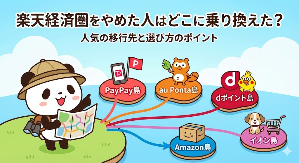 「楽天経済圏、最近お得じゃなくなった気がする…」「なんとなく疲れてきたけど、やめてもいいの?」 そんな悩みを抱えている方に向けて、この記事では楽天経済圏をやめた理由と、乗り換え先として人気のSBI・PayPay経済圏の実態、さらに「実は楽天もまだ使える」攻略法まで丁寧に解説します。